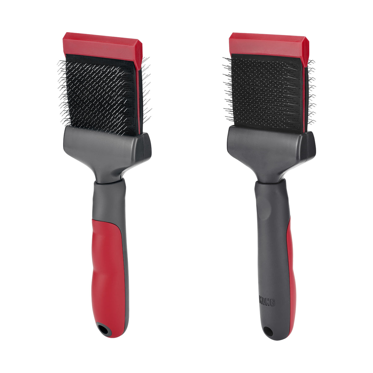 KONG Double-Sided Flexible Slicker Brush – De-Shedding & Detangling Tool with Long Metal Pins and Flexible Head, Non-Slip Grip, Ergonomic Handle